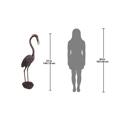 This bronze bird statue, reminiscent of the European tradition of splendid, grand-scale garden art, artistically captures the form and grace of the elegant heron. Our bronze crane statue, finished with a hand-applied classic sepia bronze patina, is cast one piece at a time in the traditional lost wax method, which highlights its graceful legs and exquisite, elongated neck and guarantees lasting beauty. Sure to be a focal point, this Design Toscano heirloom-quality bronze garden statue, on stable platform base, conveys that you take the exterior of your home as seriously as the interior. Piped to optionally cascade flowing water from the crane’s beak into your pond, pool or fountain. Simply add the optional 400 GPH pond pump kit to create beautiful water music in your garden. Accommodates Toscano Pump Kit DR-400, sold separately. 27″Wx13½”Dx57″H. 34 lbs.