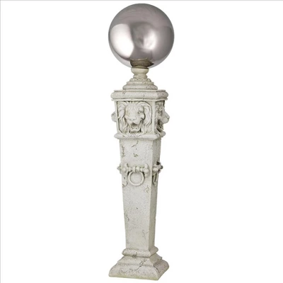 Reflect the grandeur of an ornamental English garden with this traditional focal piece as stately as a British boxwood. Rising from a tiered pedestal base to showcase four regal lion heads, this enviable statement piece is crowned with a shiny, 16-inch, polished steel gazing globe that reflects the ever-changing, 360-degree beauty of the seasons. Our Victorian-era Toscano exclusive is cast in quality designer resin with a faux stone finish. 18″Wx18″Dx41″H. 14 lbs.